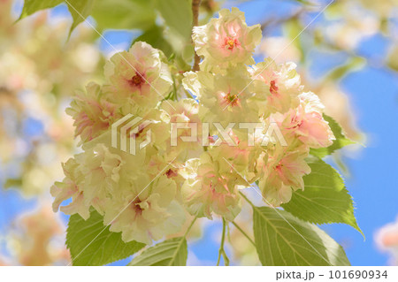 薄緑色の桜 うこんの桜 鬱金 鬱金桜 桜 満開の鬱金