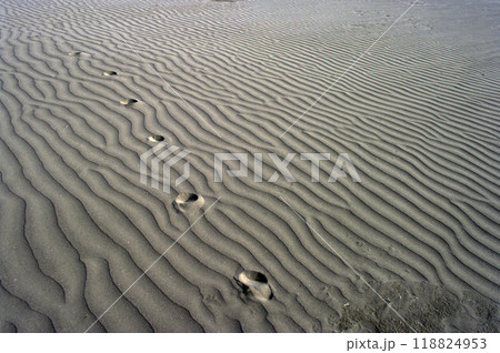浜辺で潮の満ち引きを見つめている。波にさらされて砂が織りなす不思議な紋様に吸い込まれていく。