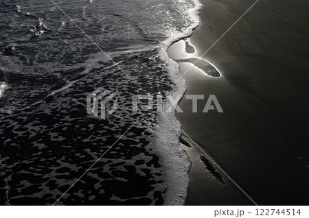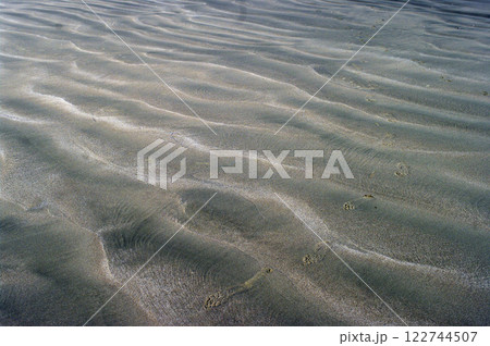 海辺、波の織りなす美しさ、神秘さ。寄せては返す波、地球の息遣いのようにも見えてくる、水のパターン。