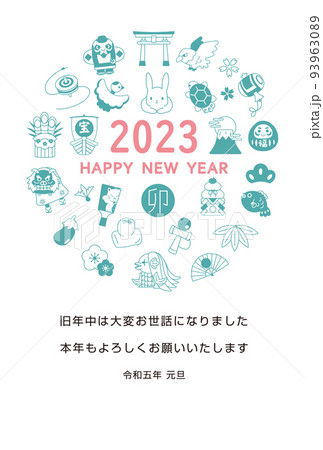 2023 卯年 ウサギ 年賀状 年賀はがき テンプレート シンプル イラスト 縦型