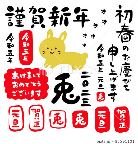 2023年 令和五年 卯年 年賀状 筆文字 セット素材①