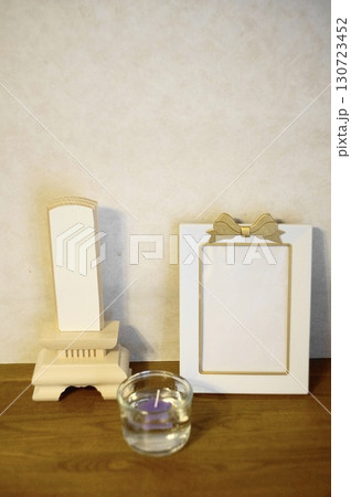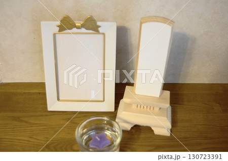 供養写真立てと白木の位牌と蝋燭