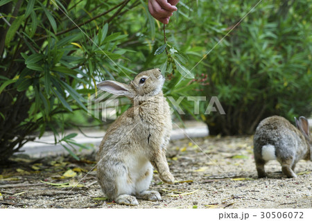 大久野島 エサを食べるウサギ