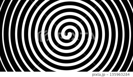 Hypnotic spiral vortex with black and white concentric circles creating optical illusion effect. Abstract geometric pattern with swirling lines and hypnotic radial design.