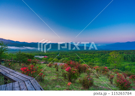 (山梨県)ツツジ咲く清里の美し森から富士山遠望 夜明け