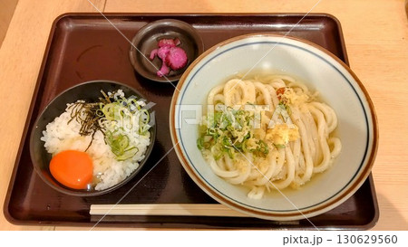 うどんチェーン店で食べる「釜玉うどん」