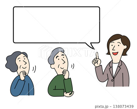 スーツを着た男性の説明を聞く高齢の男女のイラスト