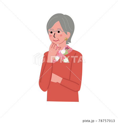 シニア女性の表情 上半身のイラスト 納得する仕草