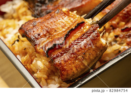 注)湯気は合成。国産のうなぎ蒲焼き、鰻かばやき、鰻蒲焼、かば焼き、高級グルメ、海鮮料理、ウナギ料理。
