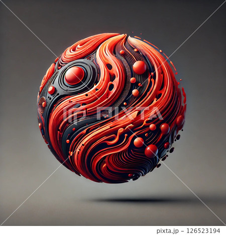 うねうねの球体イラスト!赤と黒のドロドロポップな背景!キャラクターのようなボール