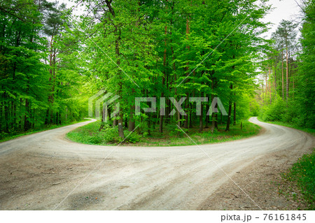 A sharp turn in a green forest, an island with trees