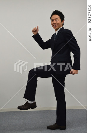 片足を上げてグーサインをする若い男性