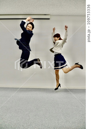 飛び跳ねる男女