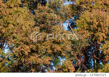 春の花粉の季節の杉の花芽の様子