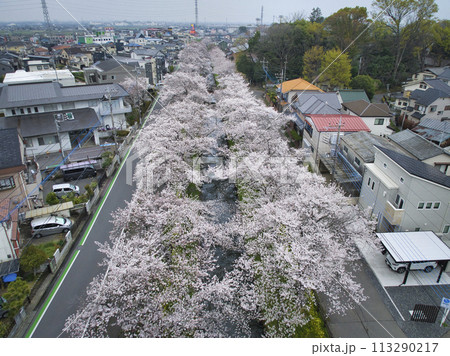 小江戸川越桜の名所 新河岸川 埼玉県川越市(ドローンによる空撮)