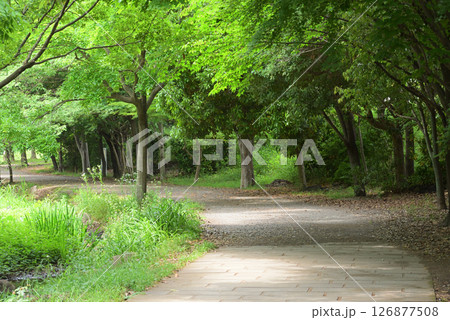日本の横浜都市景観 緑道「くさぶえのみち」