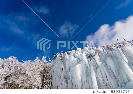 三重県 冬の御在所山頂の氷瀑 樹氷 霧氷