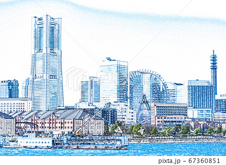 【都市風景】横浜 みなとみらい【色鉛筆】