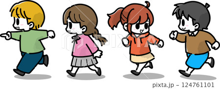 おいかけっこしながら走っている4人の子どもたち