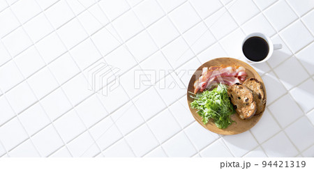 キッチンカウンターのシンプルな朝食、
