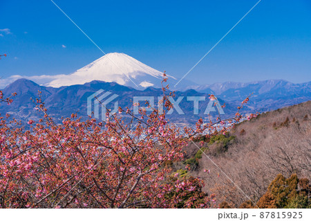 河津桜と富士 日本の春 おおいゆめの里 神奈川の名所