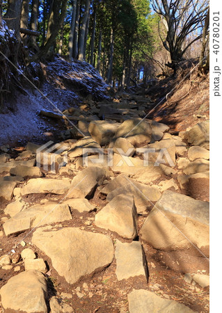神奈川県伊勢原市 大山の登山道(女坂)から見たケーブルカー