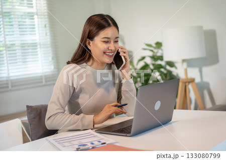 Mother and daughter sitting at table and calculating finances. Daughter using smartphone for online payment