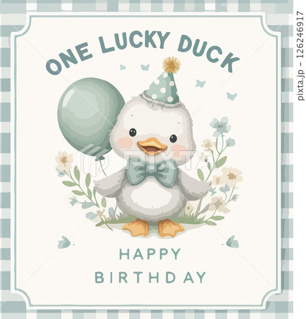 Watercolor cute duck happy birthday watercolor card.