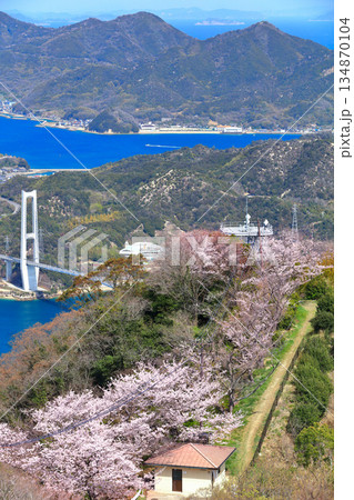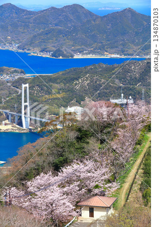 【愛媛県】桜咲く積善山から見た ゆめしま海道(生名橋)