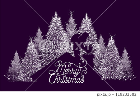 Santa puts a present down the chimney. Happy New Year . Christmas trees. hand drawing. Not AI, Vector illustrations.