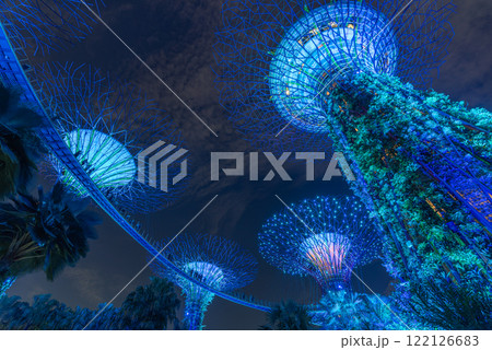 Stunning Night View of Colorful Luminescent Trees at Garden by the bay