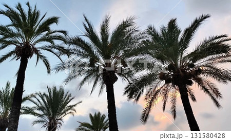 Stunning and Elegant Palm Trees Silhouetted Gracefully Against a Serene, Calming Sky