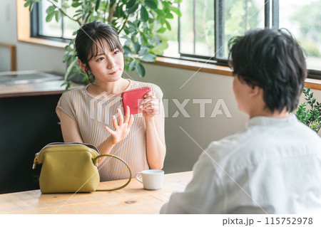 デートでカフェ・飲食店・レストランに来た笑顔の女性