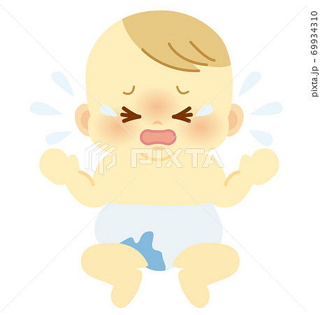 おむつ姿のおしっこ漏れで泣く表情の赤ちゃん_ベビー全身イラスト61