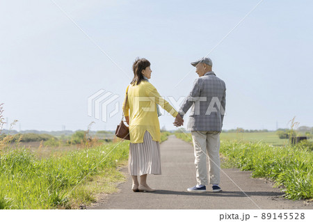 シニア 夫婦 オシドリ夫婦 街 散歩