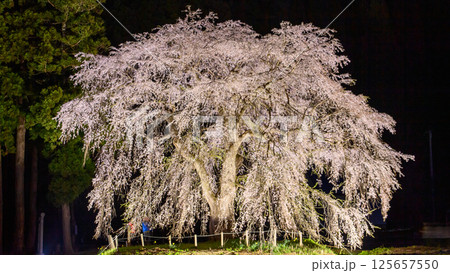幻想的な夜 おしら様枝垂れ桜のライトアップ 秋田県