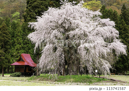 里山の春 秋田県湯沢市 おしら様の枝垂れ桜