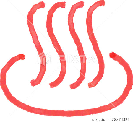 赤い水性ペンで描いた温泉マークアイコン