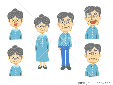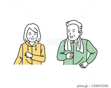 太線タッチOKサイン男女のイラスト(アイコン、若者、シニア、高齢者)