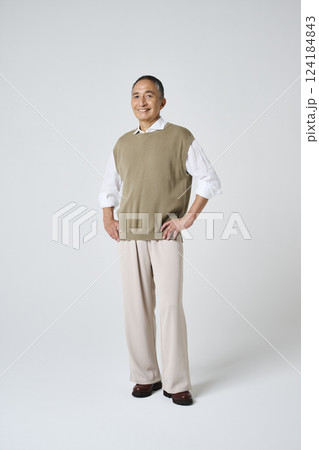 高齢男性_おじいちゃん_豪快に笑う_全身