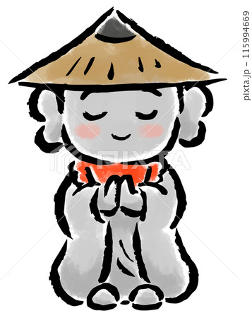 手を合わせる笑顔のお地蔵さん 筆タッチ手描きイラスト