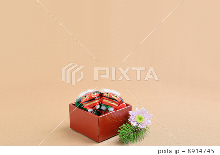 獅子おじゃみと菊と千両