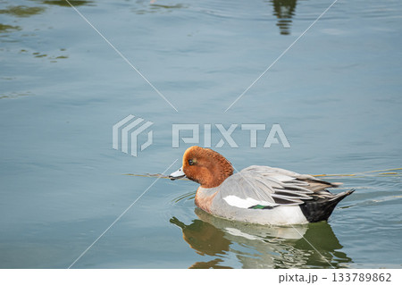 賀茂川の清流を泳ぐヒドリガモ(オス) 京都市賀茂川