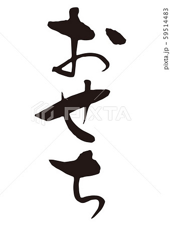 筆文字素材の手書きの【おせち】墨で書いた横書きのおせち料理のイラスト