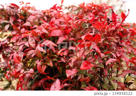 鮮やか 色づくオタフクナンテンの葉