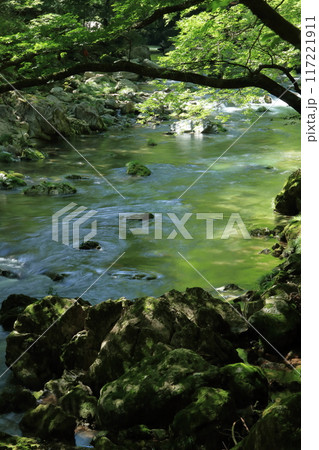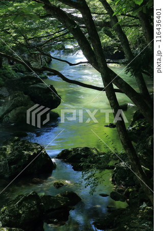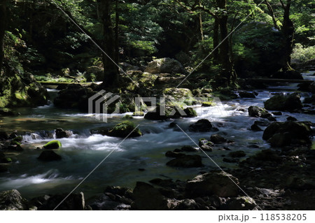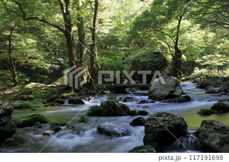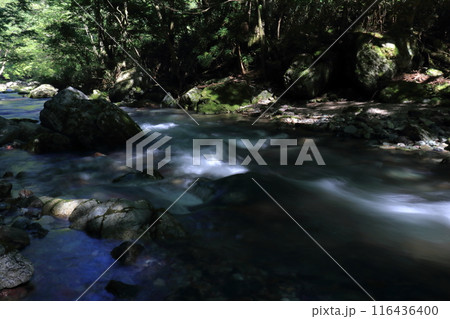 小田深山渓谷 清流に差し込む木漏れ日 夏 (愛媛県)