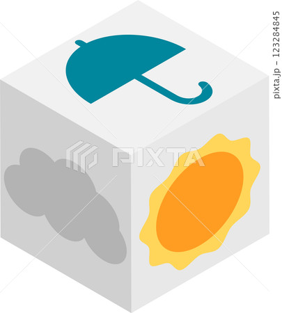 アイソメトリックな天気のアイコンが付いたサイコロ
