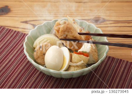 お皿に盛ったおでん 箸上げ