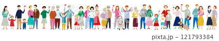 いろいろな家族構成のイラストセット(核家族・シニア夫婦・若夫婦・ペット家族)