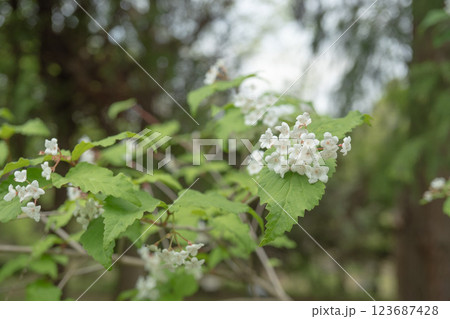 オトコヨウゾメの枝先の花をクローズアップ【日本固有種】春の花・ガマズミ科